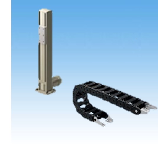 昇降機構「リフトマスタ」の選定とケーブル保護用の「ケーブルベヤ TKP形」に、両者の取付ベース設計を含めた一括提案を採用しました。