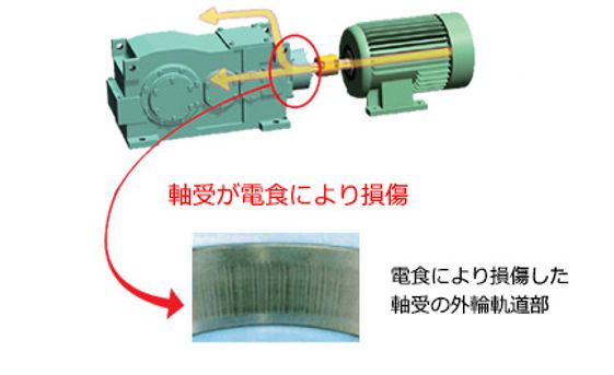 モータからの漏れ電流による減速機や装置の電食(軸受損傷)を未然に防止します。