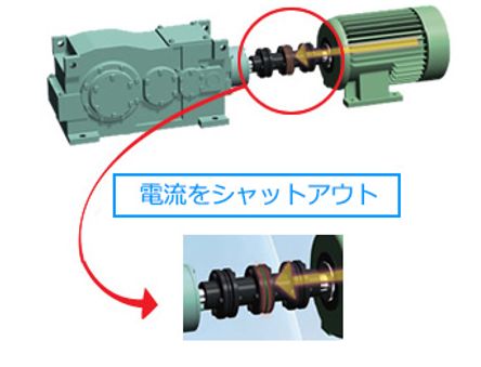電気絶縁仕様はモータからの電流をブロック。機械側の電食を防止します。