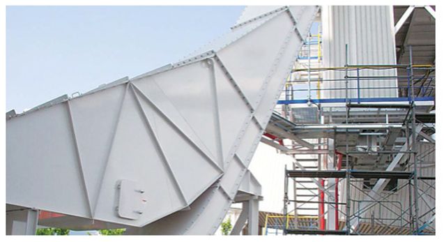 LCフローは粉・粒体輸送物を、それ自身の持つ相互摩擦を利用して水平から垂直、または水平から傾斜に一台で運ぶコンベヤです。