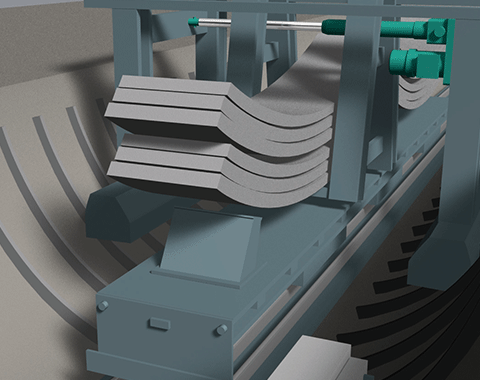 ヘリオスタッド駆動用の旋回・傾動動作にピンギヤドライブユニット、ギヤモータ、パワーシリンダなどが採用されています。