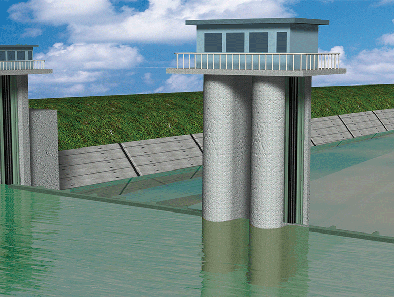 つばき商品は、津波や洪水から人々の生活を守る防災設備の分野でも活躍しています。