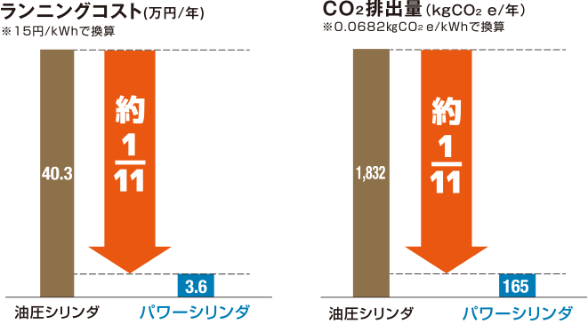 また、油圧シリンダに比べてCO2排出量、電力使用量も大幅削減が可能であり、油圧ホースからの油漏れによる汚染や火災のリスク低減など、環境にやさしいアクチュエータです。