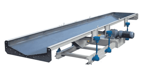 振動コンベヤとは異なり、上下のバウンドと垂直方向の衝撃が無く、搬送物はトレーの上を滑るように移動します。搬送物によって高温物搬送・重量物搬送・摩耗対策・錆対策が可能です。