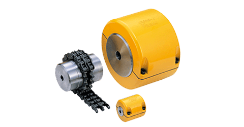 カップリング用に強固に製作した2列ローラチェーンを、2個のスプロケットに巻付けたフレキシブルカップリングです。