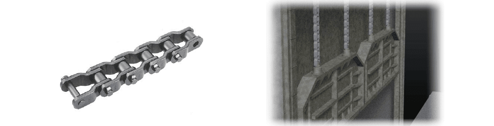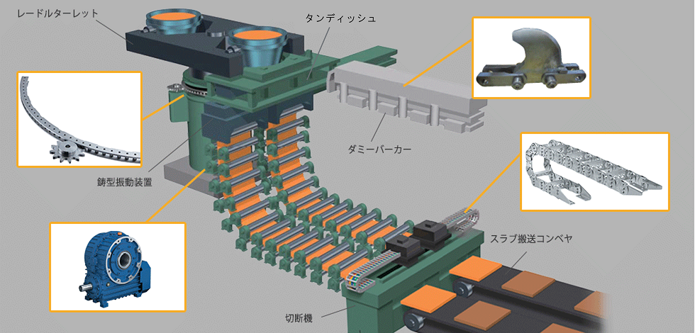連続鋳造で使用されるダミーバーを元の位置へ戻すためのチェーンです。