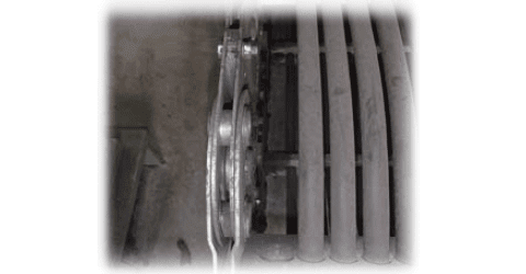 アンローダに使用されるスプロケットは、チェーンに合わせた最適な形状で製作しています。特殊硬化処理を行っており、非常に高い耐摩耗性を有しています。
