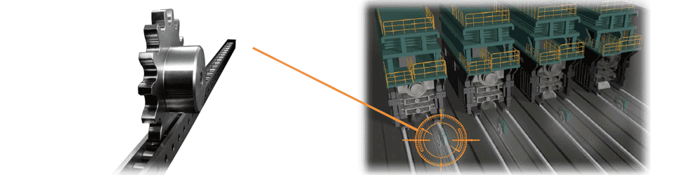 レードルターレットの回転駆動部や圧延台車の駆動部に最適な、ギヤに代わる新しい駆動ユニットです。