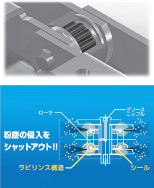 つばきは耐粉塵性に優れたベアリングローラを採用することで、チェーンの長寿命化を達成しています。