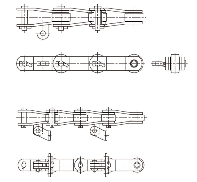 これらの高強度チェーンは、鋳鉄製コンビネーションチェーン用スプロケットと互換性があります。