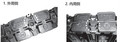 将内链节安装至外链节。※将外链节的挂钩插入内链节的缺口。(外周侧 → 内周侧的顺序)