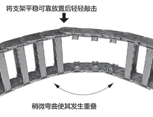 闭合支杆。使用塑料锤子轻轻敲打支杆上部可闭合支杆。
