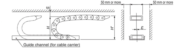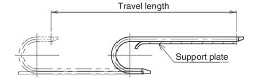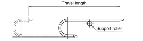 Note) When adding support rollers or support plates if the sag amount in the unsupported length portion is increasing, the installation position (height) or—for support plates—the shape (where the unsupported length portion transfers to the channel) must be set with consideration for the amount of sag in the unsupported length portion at that time.