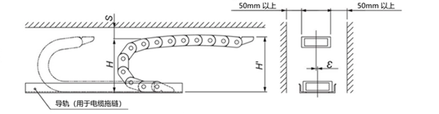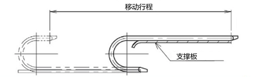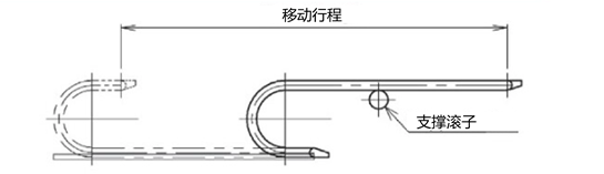 注)如在无支撑跨距部已有一定松垂的状态下追加支撑滚子或支撑板,设置位置(高度)需考虑自由跨距部的松垂量,而且支撑板需考虑形状(自由跨距部移乘至导轨的部分)。
