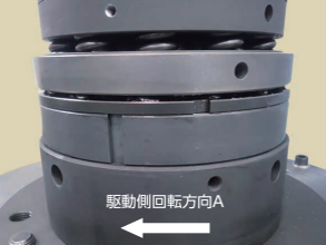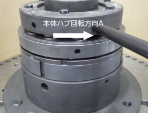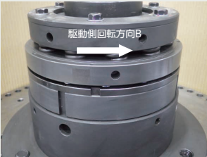 復帰操作2は駆動側回転方向Bへトルク調節ナット(本体ハブ )を回 転させ 、ドライブ プレートと中間プレートのスリット位置が一致した状態(ランダム仕様)