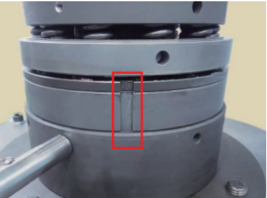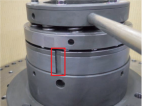 トルク調節ナットのターニング穴に付属のキータイプ復帰用バーレンチを利用して、本体ハブの駆動回転と同じ 方向(復帰操作1)にドライブプレートと中間プレートのスリット位置が