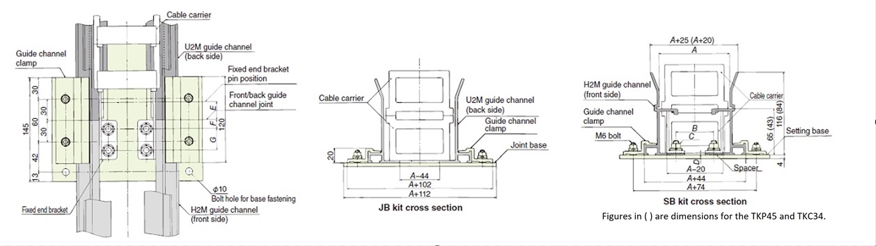 2.Setting base has a structure to which the fixed end bracket of cable carrier can be installed. Other dimensions are the same as joint base.
