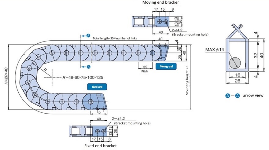 Cable carrier Plastic series TKP Series Major Specifications