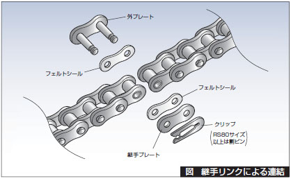 チェーンの継ぎは、長寿命ラムダチェーン用継手リンク(フェルトシール付)をご使用ください。