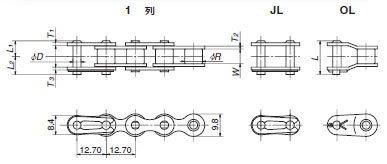 1.1ピッチ形オフセットリンクを使用する場合、伝動能力は表記値の65%になります。