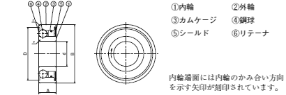 D | 面取r(最小) | 推奨軸径 | 推奨ハウジング径 | 推奨ハウジング肉厚(注1) | 同一寸法の ベアリング呼び番号 |