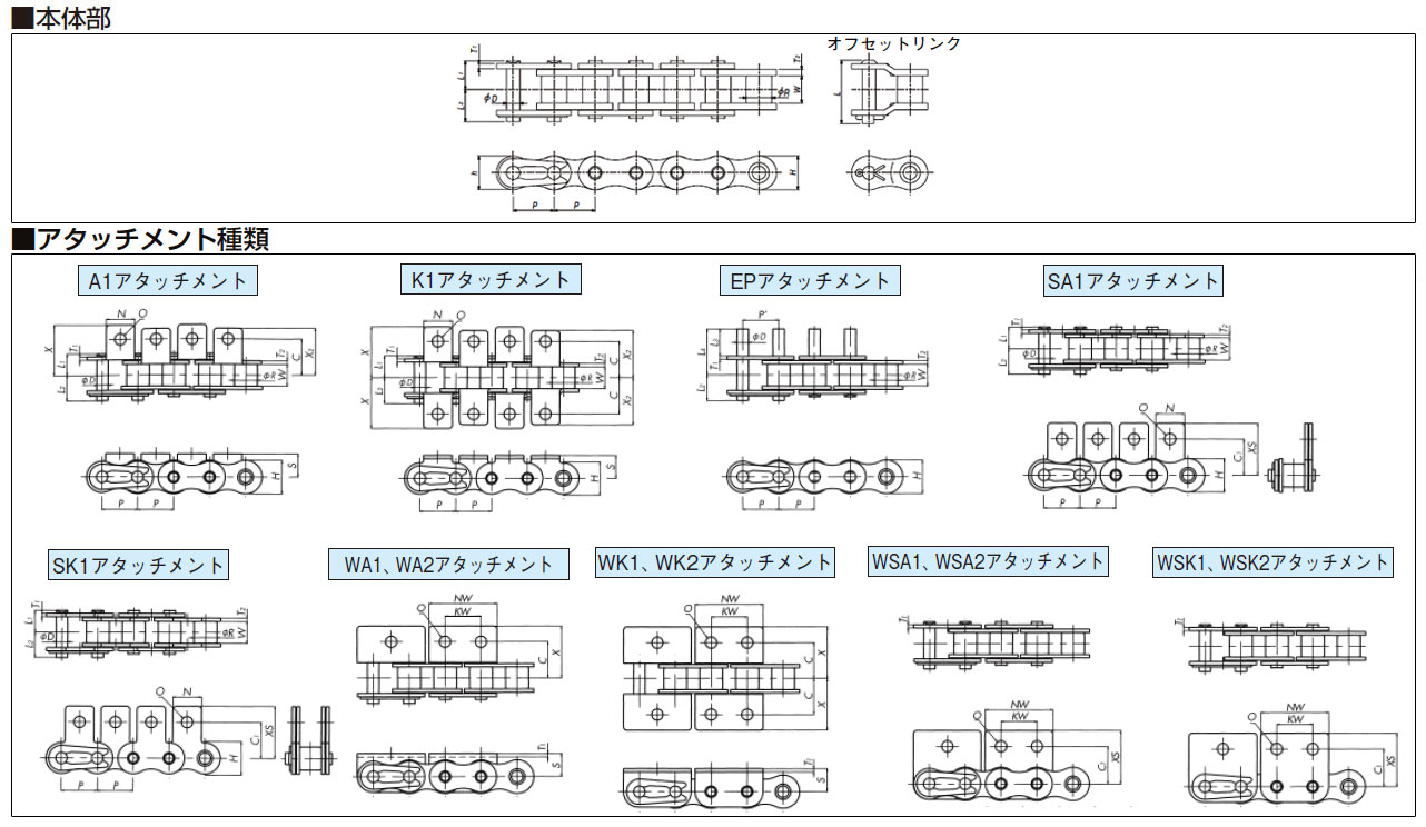 BSアタッチメント付チェーン 主要諸元