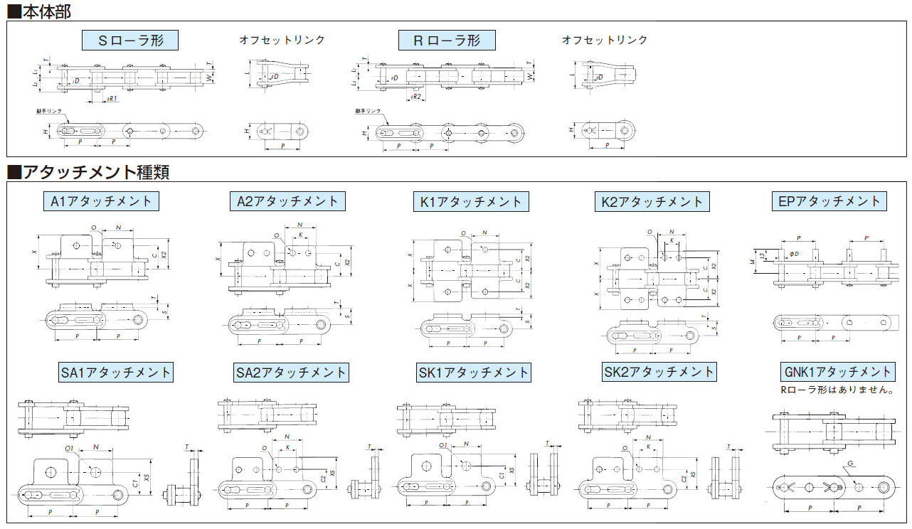 ・アタッチメント付の図はSローラ形ですが、Rローラ形もアタッチメント寸法は同一です。
