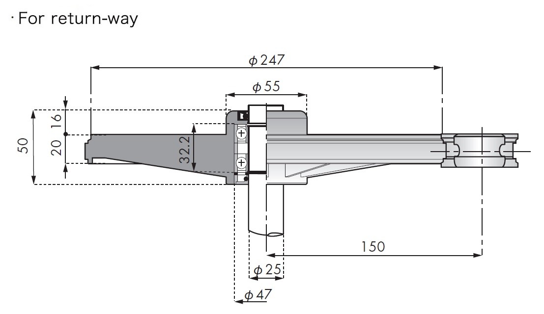 1.Carry-way and return-way corner discs differ only in whether the shaft extends through the disc.