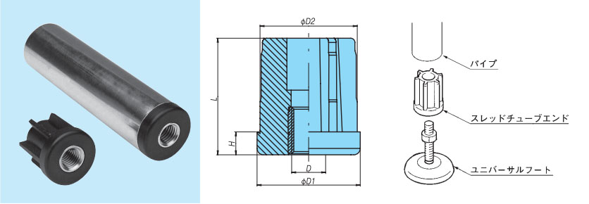 パイプに挿入し、ユニバーサルフートと組合せれば、コンベヤフレームの脚としてご使用いただけます。