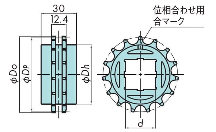 | 形番 | 歯数 | ピッチ円直径 Dp mm | 外径 Do mm | 軸穴 形状 |