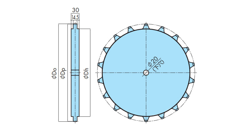 | 形番 | 歯数 | ピッチ円直径 Dp mm | 外径 Do mm | 軸穴 形状 |