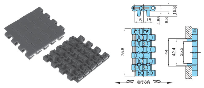 プラスチックモジュラーチェーンWT1505G-M形 主要諸元