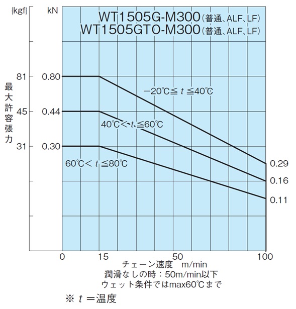 - 注)2. MPD仕様の最大許容張力は普通仕様の80%程度、MPW仕様の最大許容張力は普通仕様の40%程度です。