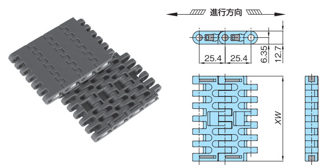 プラスチックモジュラーチェーンWT2505-M形 主要諸元