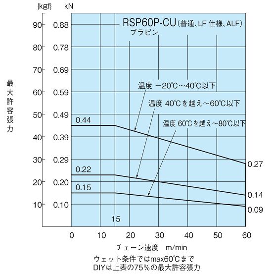 - 注)2. MPD仕様の最大許容張力は普通仕様の80%程度、MPW仕様の最大許容張力は普通仕様の40%程度です。