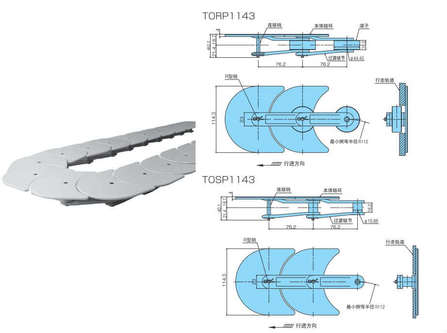 链节采用低摩擦・耐磨损规格特殊聚缩醛