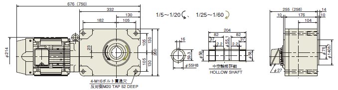 | 出力軸端 | タップ加工あり(中空軸形は除きます) | |