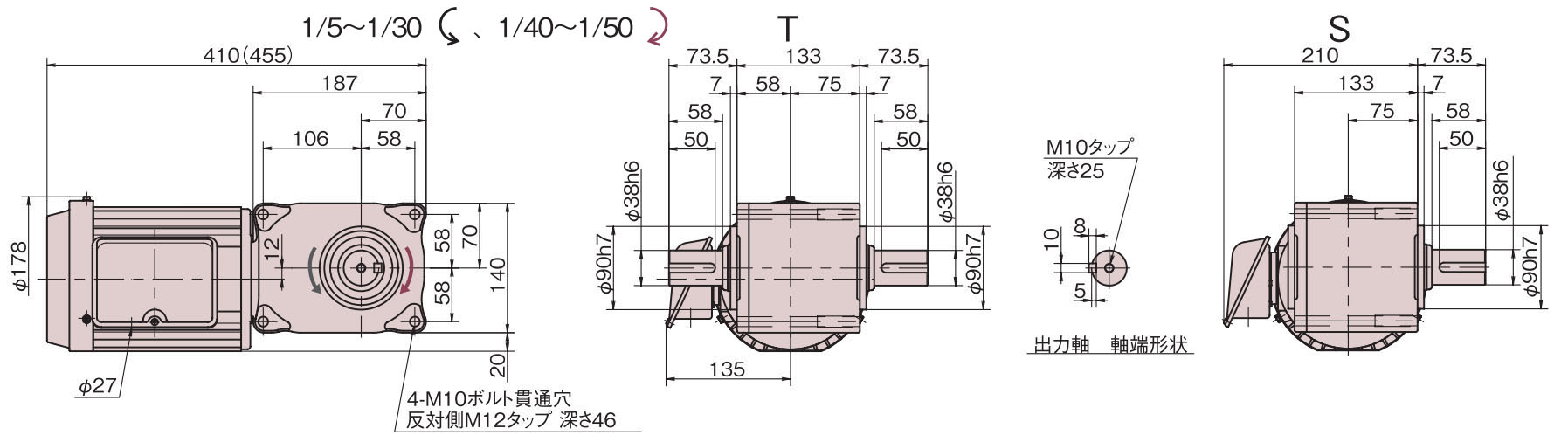 | 出力軸端 | タップ加工あり(中空軸形は除きます) | |