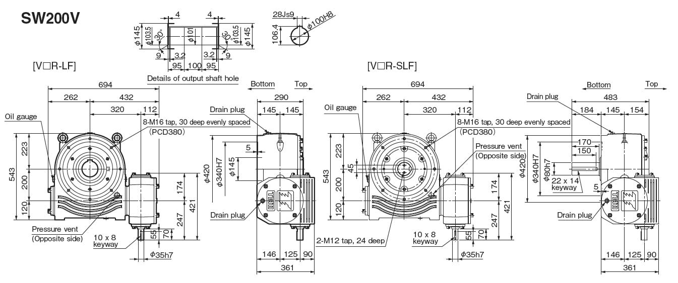 ※Refer to Page 78 of the catalog for shaft arrangements and relative direction of rotation.