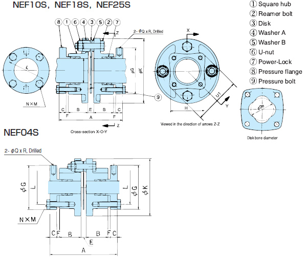 6.Tsubaki can make sizes NEF45 or higher with a Power-Lock. Request drawings for more information.