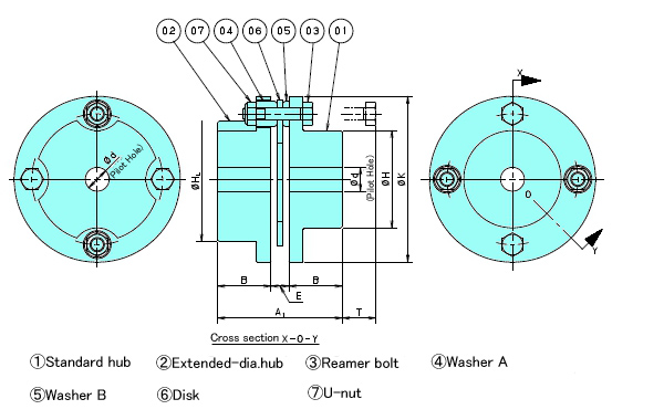 1.Refer to the Table of Dimensions for long hub and extended-diameter hub dimensions. For long hubs, the overall length will be extended for as much as dimension B is lengthened.