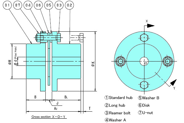 1.Refer to the Table of Dimensions for long hub and extended-diameter hub dimensions. For long hubs, the overall length will be extended for as much as dimension B is lengthened.