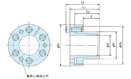 | d | D | ℓ | L0 | L1 | Lt | D1 | D2 | Mt | Pax | P | P' | 本数 | サイズ | 締付トルク MA | ||||||