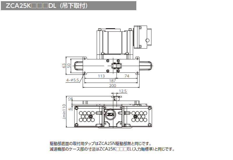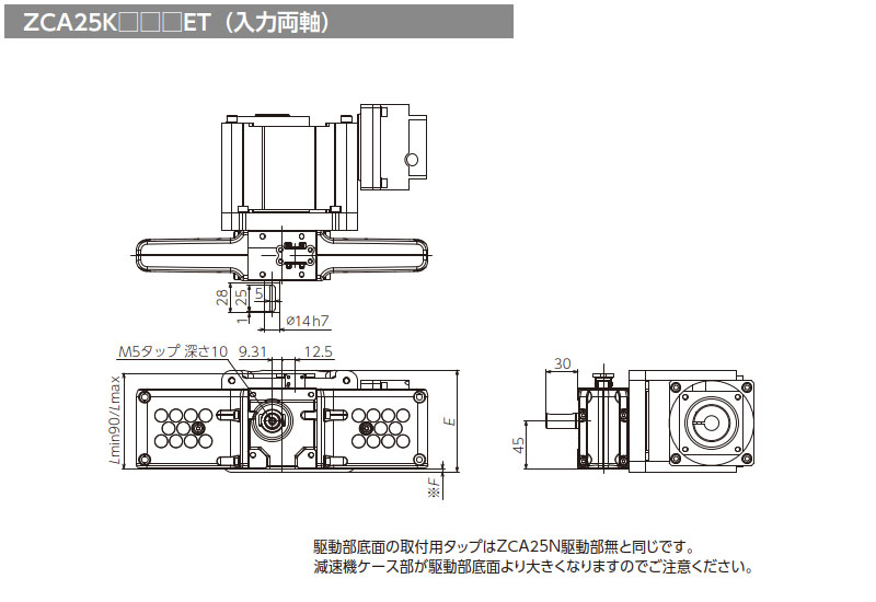 | ZCA25K-020(200W) | E4HC | 50 | □60 | φ50G7 | M5深さ12(PCD70) | 5 | 30(25) | φ14 | M4 |