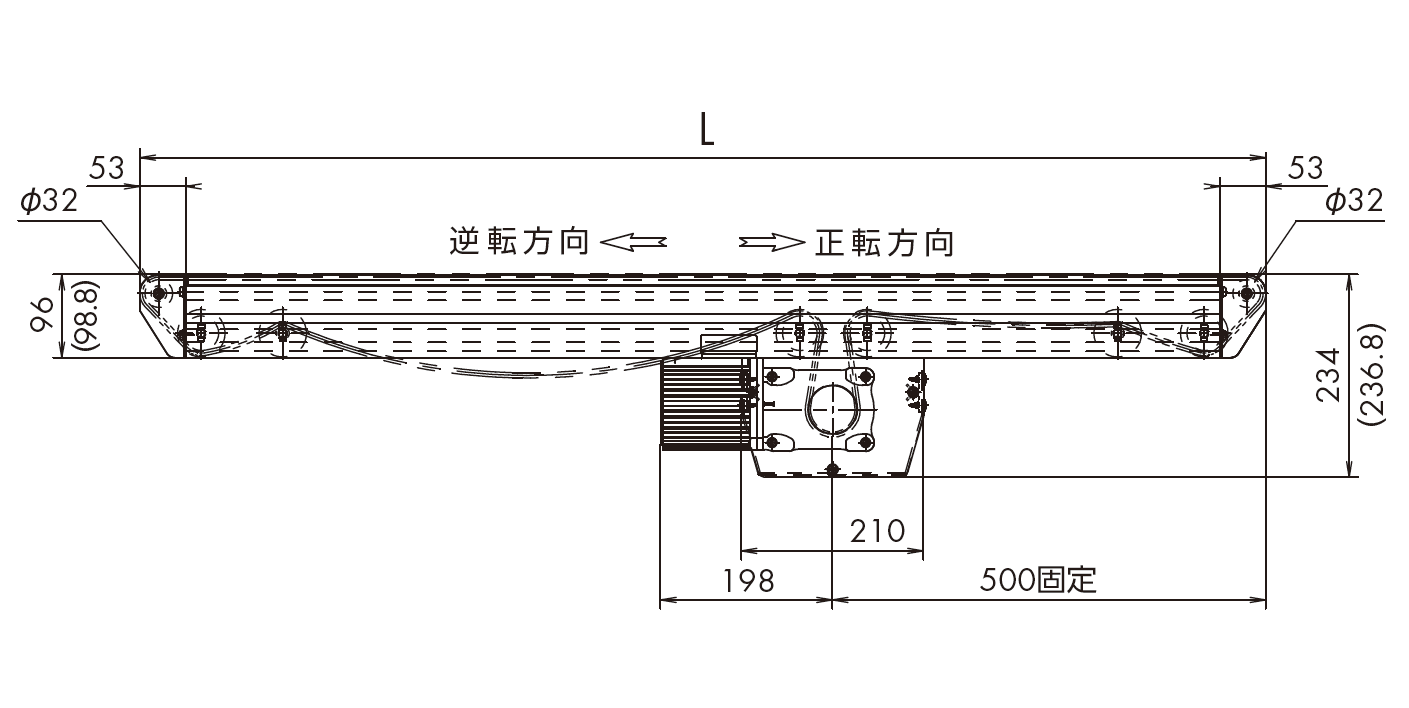 ※記載の寸法はWT0705時のものです。 ※コンベヤ端部形状がローラ構造の図面になります。 |